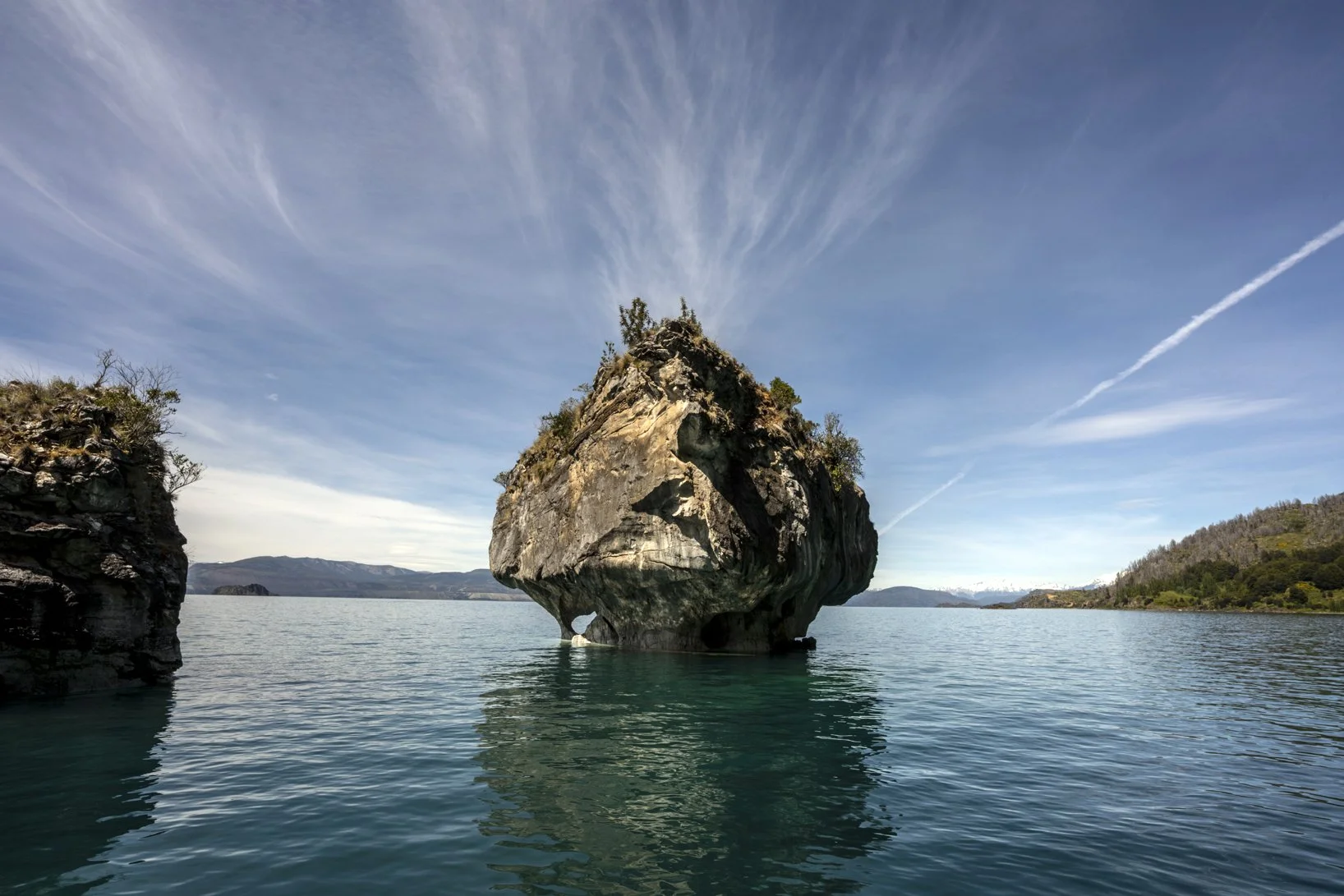 The Marble Caves, or Cuevas de Mármol, are one of the most stunning natural wonders in Chilean Patagonia, located on the remote General Carrera Lake. This network of sculpted marble caverns, arches, and tunnels is a result of over 6,000 years of wave action eroding the calcium carbonate along the edge of the lake. The constant flow of water has shaped the marble into swirling patterns of blue, gray, and white, reflecting the turquoise waters of the lake, creating a mesmerizing spectacle of color and light.